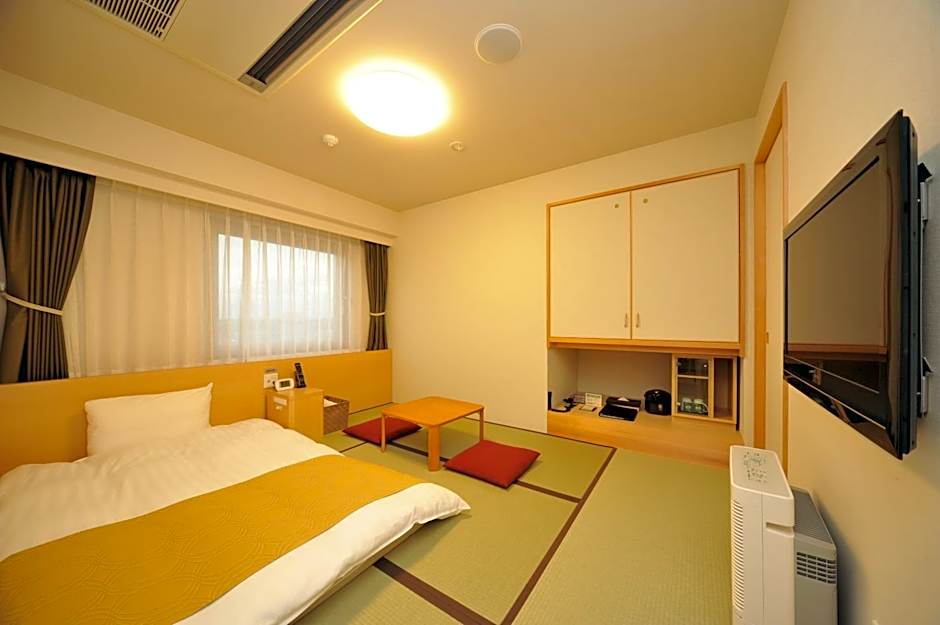 This Japanese-style twin room is located on the highest floor and features a bath made of Japanese cypress. The room comes with an electric kettle, air conditioning and satellite TV. This room with two futon mats comes with one futon mat spread out for sleeping and the other one needs to be prepared by guests.
